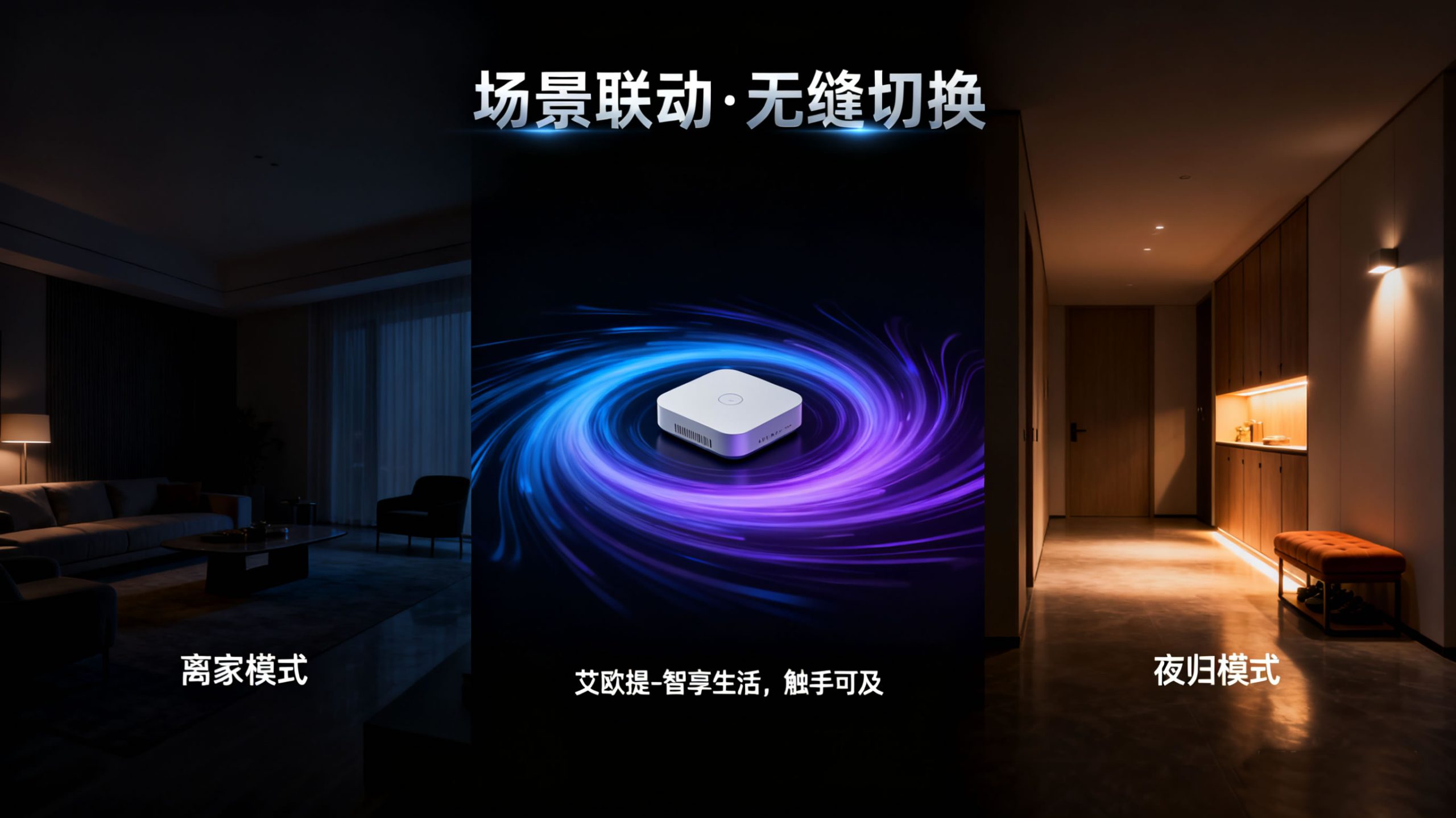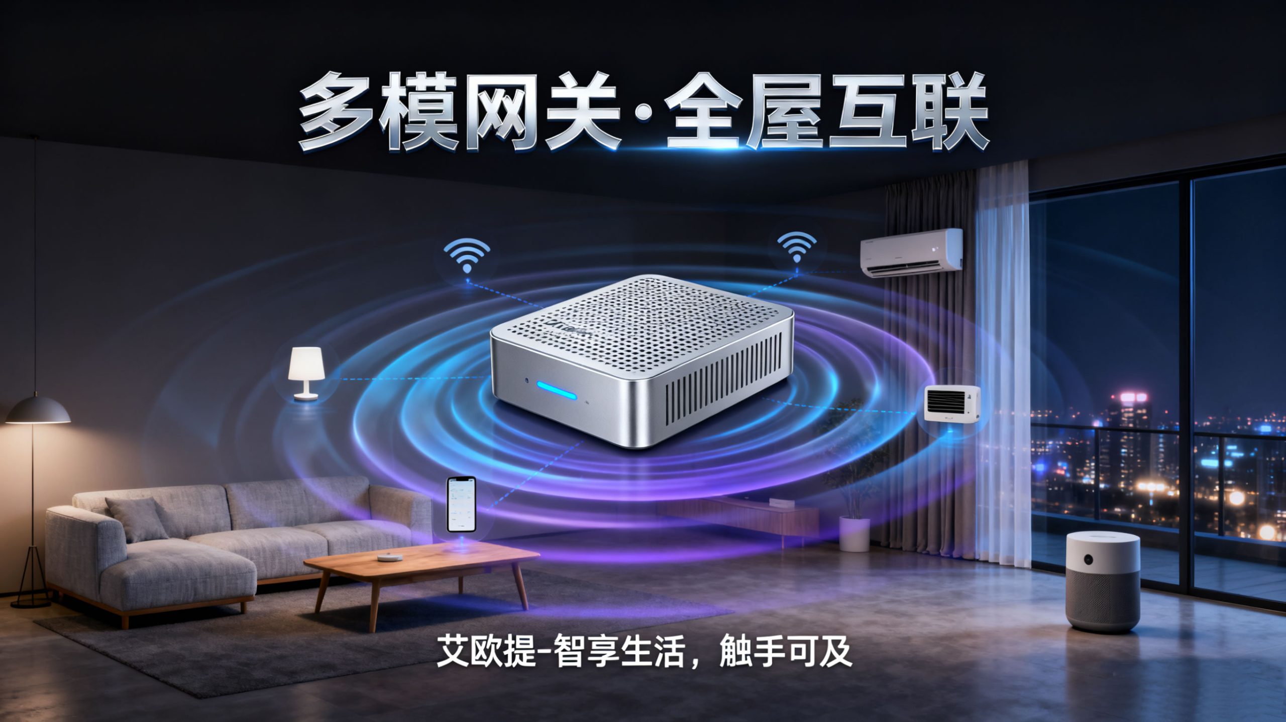 - 艾欧提多模网关:作为系统 “大脑”,同时支持 Zigbee 与 Wi-Fi 两种通信协议,可兼容后续所有执行层、传感层设备;设备需连接家庭电源与无线网络,建议安装在客厅中部或角落(避免信号遮挡),确保信号覆盖全屋所有设备安装区域;具备断网缓存功能,断网时可维持本地基础场景联动(如人体传感器触发灯光),联网后自动同步数据。